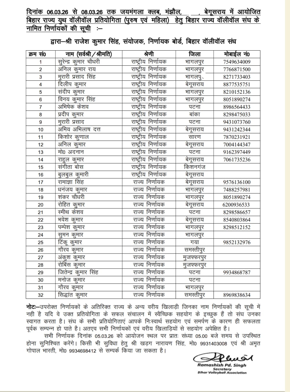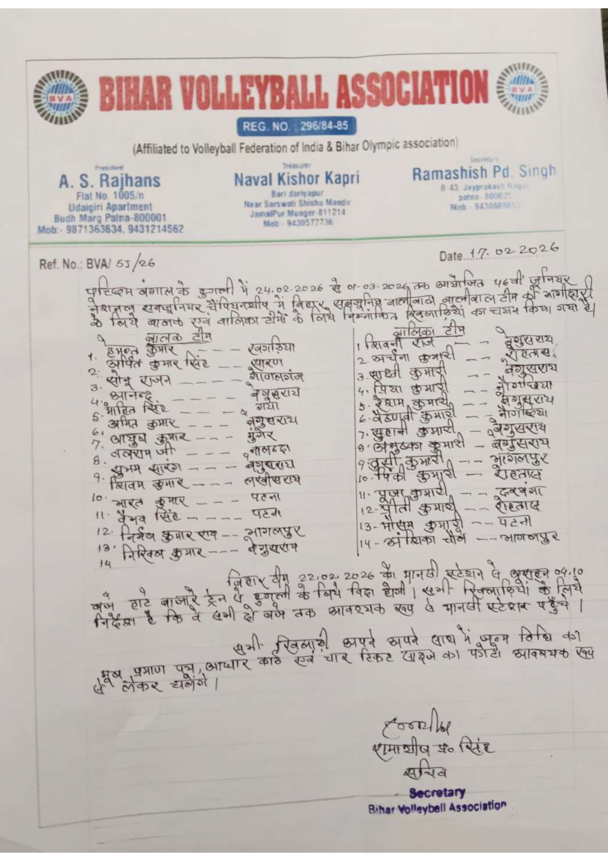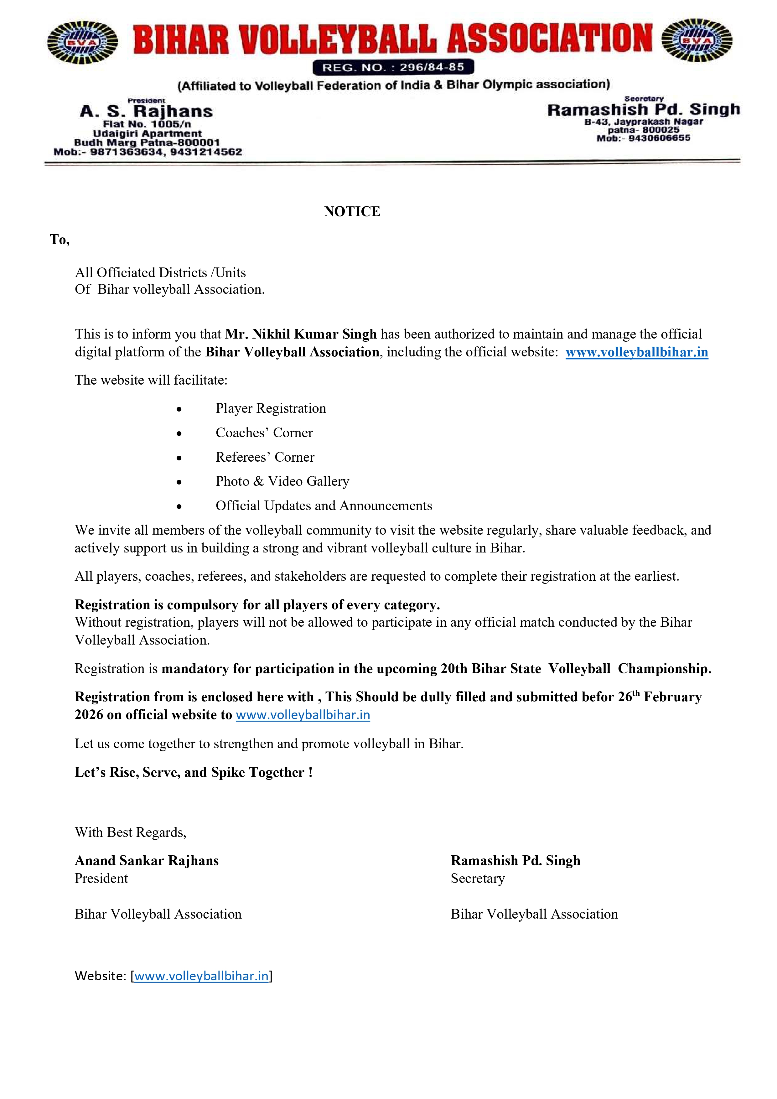 Affiliated to Volleyball Federation of India & Bihar Olympic Association